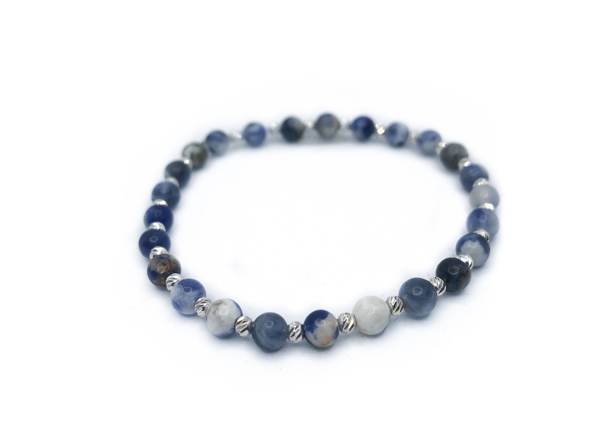 All bracelets are made of different sizes of 925 sterling silver beads, some bracelets also have genuine semi-precious crystals/gemstones and sterling silver charms. They’re all hand strung onto strong jewellery elastic.