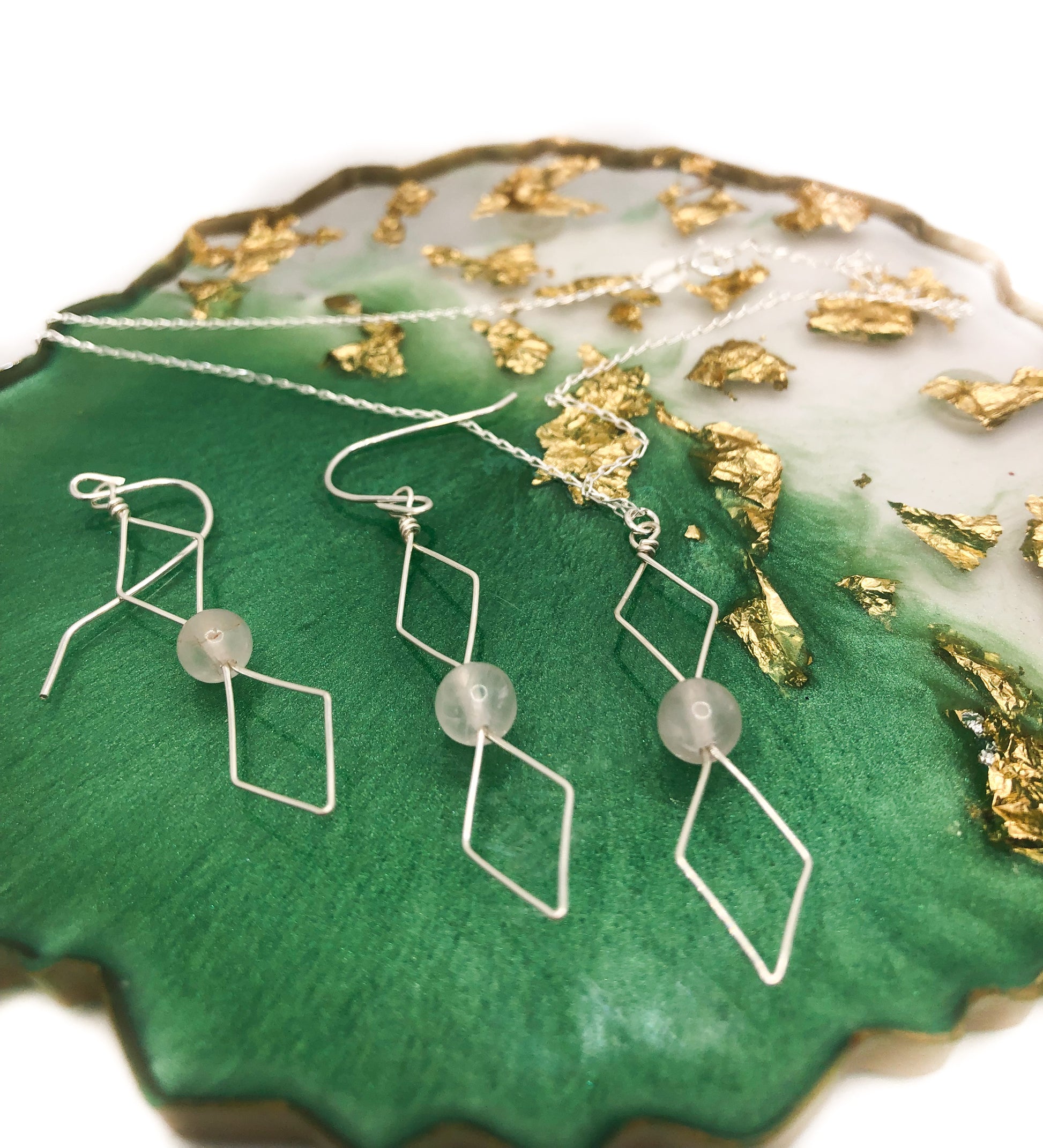 Introducing our Diamond Crystal Necklace, Handmade in the studio with recycled sterling silver wire. We carefully (and usually painstakingly) hand craft our wire into these diamond shapes which encase a beautiful crystal bead of your choice.