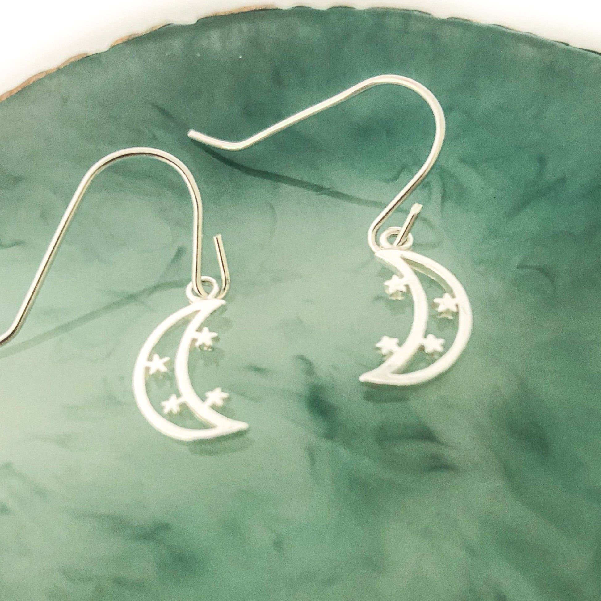 We attach these cute charms onto our handmade ear wires, made of sterling silver. If you pinch the front and back of the wire when in your ear, they mold to your ear shape, giving a lower chance of them moving. Also use the rubber backs provided.