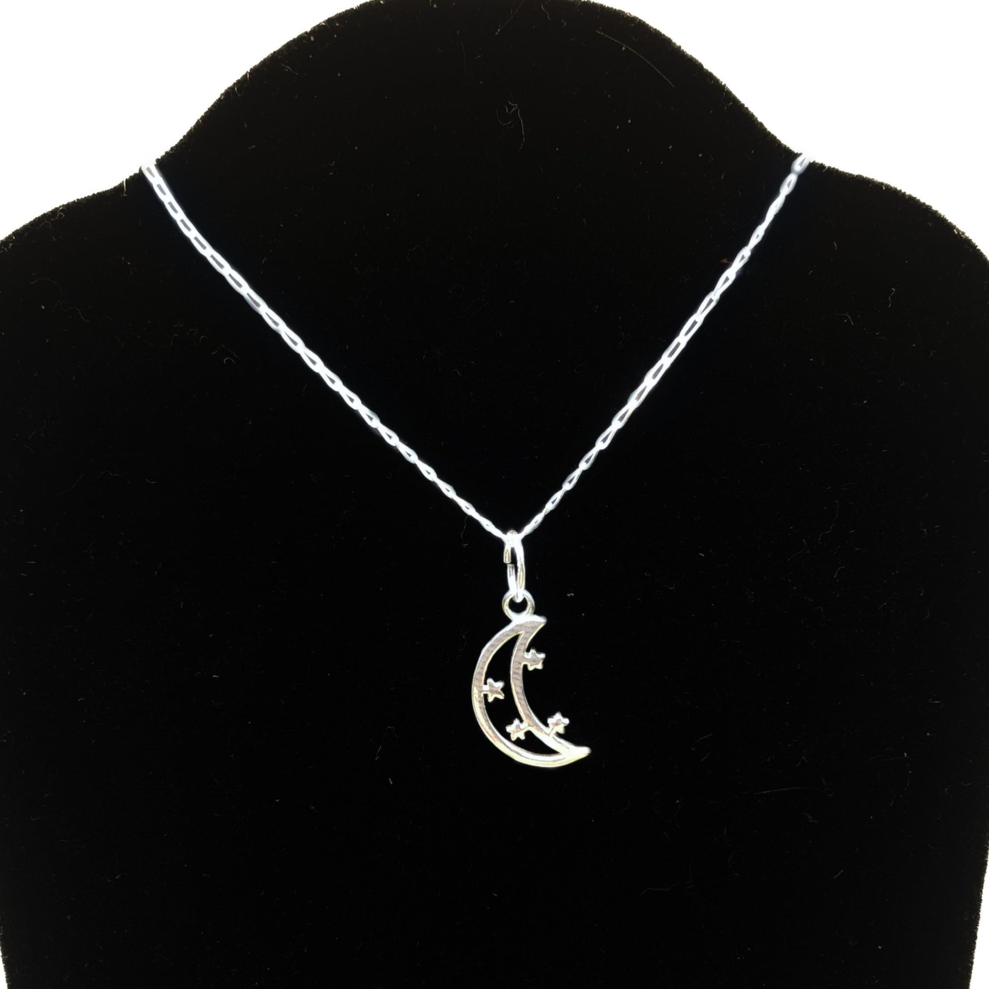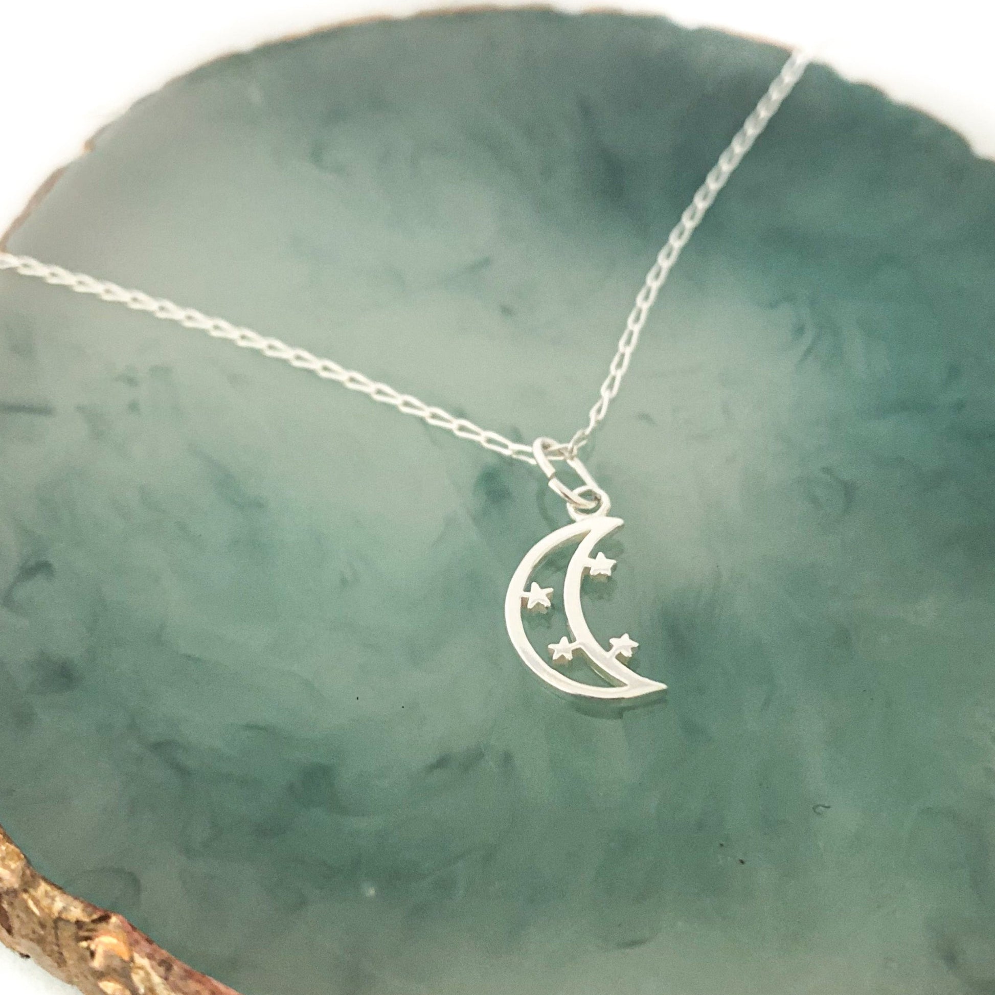 Materials - Necklace Chain and our Moon Charm are made 100% of recycled 925 Sterling Silver. The chain is a diamond cut curb chain.